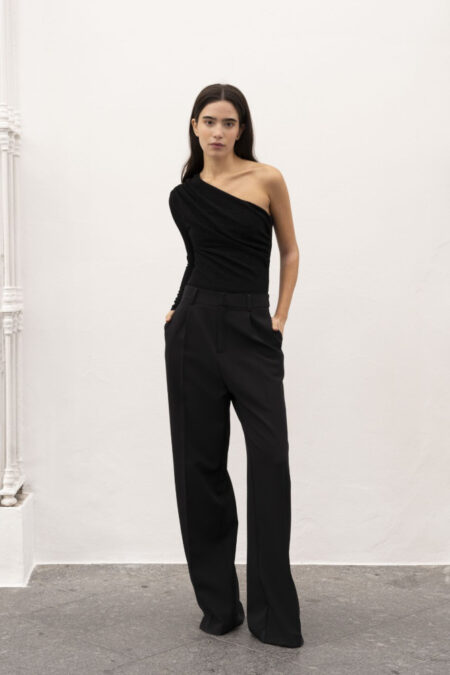 El diseño asimétrico de nuestra body deja al descubierto el hombro izquierdo, mientras que el derecho presenta una manga. Se ajusta perfectamente a tu cuerpo y te sentirás cómoda en todo momento. Y su tejido añade un brillo sutil y es también agradable al tacto.