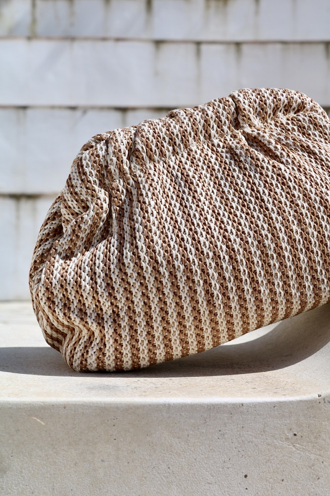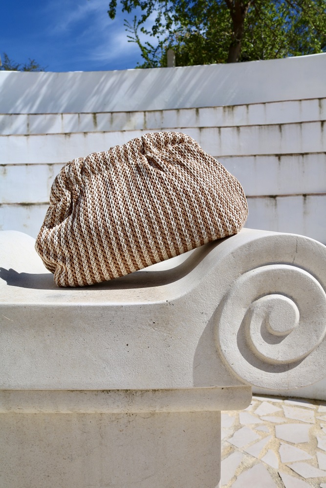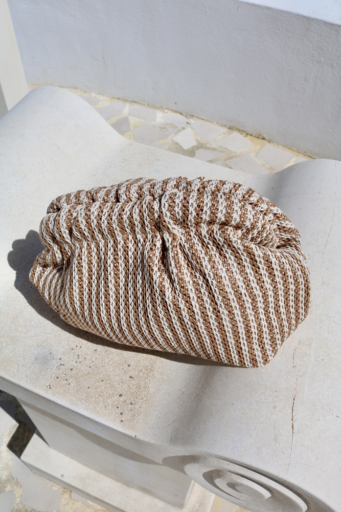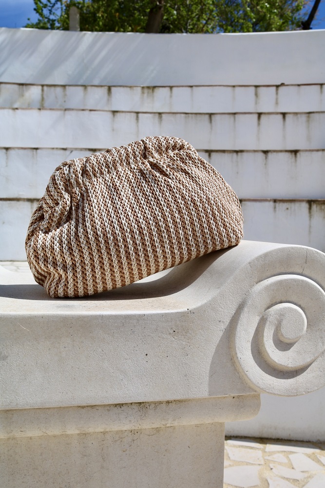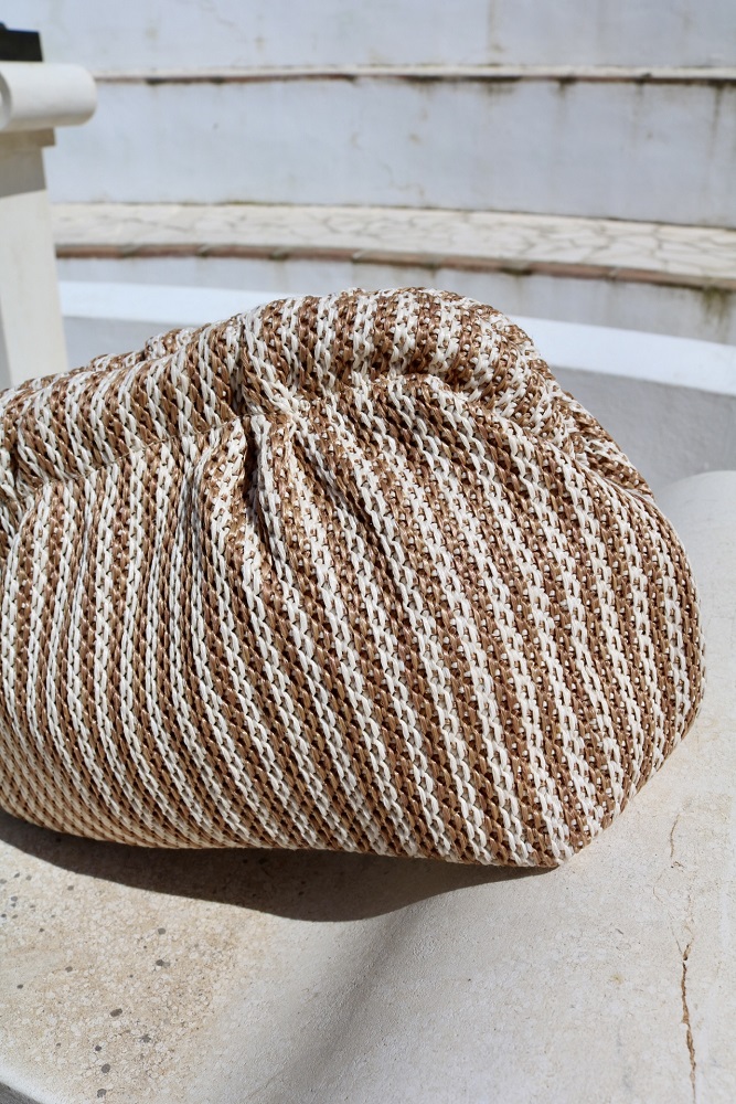 Bolso de mano rayas en punto tejido y cierre de monedero es perfecto tanto para el día como para la noche, por su capacidad y estilazo.