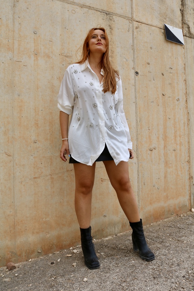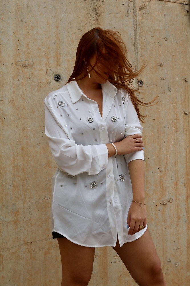 Stock agotadoNuestra camisa blanca joya confeccionada en tejido ligero y gustoso es la opción perfecta si buscas ir cómoda y elegante a la vez.