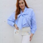 El detalle diferencial de esta camisa es su lazo integrado, que puedes anudar para realzar tu figura o dejarlo suelto para un estilo más relajado.