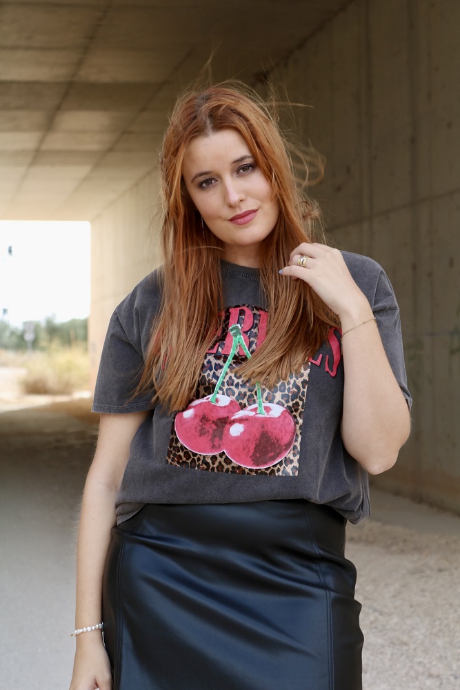 Camiseta con rollazo que te dará mucho juego con blazer/chupa de cuero y falda midi, mini o como te dé la gana, un sinfín de aventuras e historias que contar. Ideal para tus looks más festivaleros.