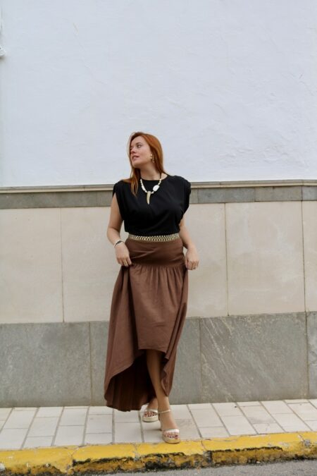 Saraos y celebraciones son perfectas para este outfit, por separado, la parte de arriba servirá para llevar con cualquier vaquero o palazzo, ficha alguno de los nuestros y la falda que podrás llevar con todo tipo de blusas, camisas o camisetas.