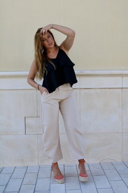 El diseño con el bajo deshilachado añade un toque desenfadado y actual, convirtiéndolos en una opción ideal para vestir a diario con comodidad y a la moda. Además, cuenta con bolsillos delanteros y se cierra de forma clásica con botón y cremallera en la parte delantera.