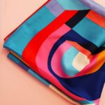 Pañuelo de seda con estampado geométrico en diferentes colores. Ideal para crear todos looks que se te pasen por la cabeza.