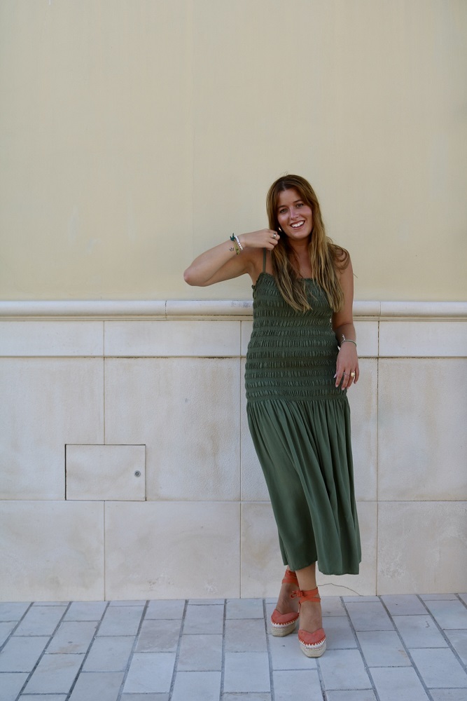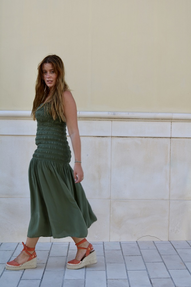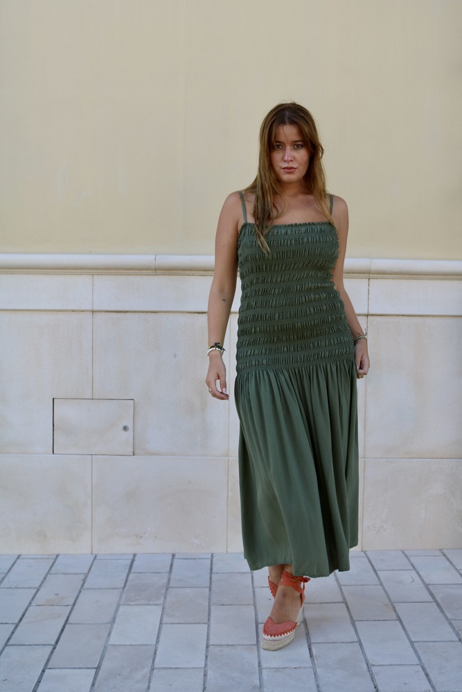Stock agotadoVestido fruncido verde. Es una opción diferente para invitadas que buscan estilo y versatilidad. Un diseño midi, con cuerpo fruncido y de color verde. Se presenta en tirantas regulables. El bajo con volante aporta movimiento al caminar.