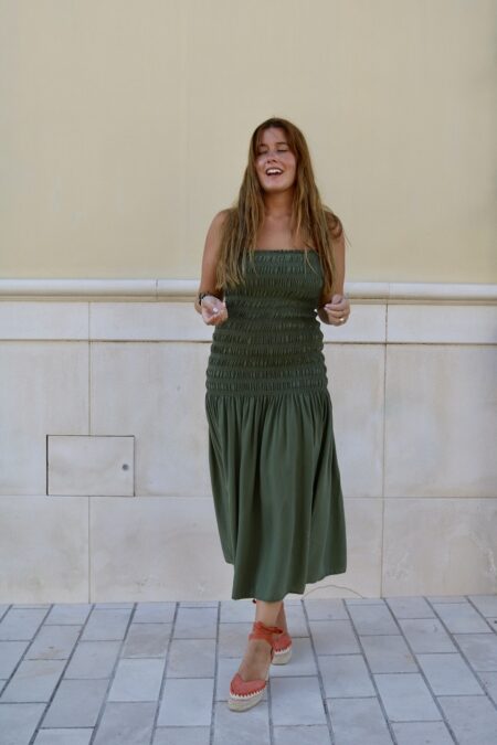 Un vestido versátil, perfecto para bodas, fiestas y eventos especiales, que puedes elevar con un abrigo largo o una estola en los meses más fríos.